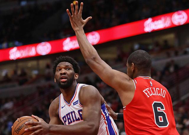 恩比德统治攻防两端76人轻取公牛锁定东部第二